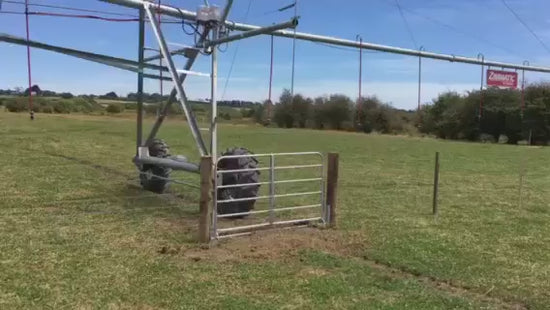 One of the best uses for a Ride Over Gate is in a pasture or gated field with pivot irrigators. The Irrigators tire can ride over and gently open the gate automatically and slowly closes it as it rolls over and through.