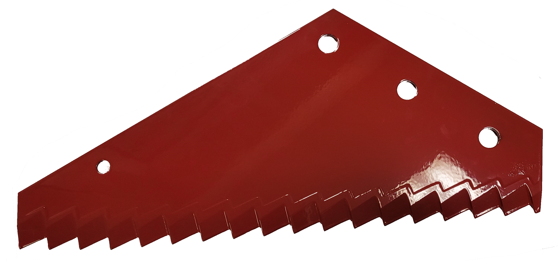 We sell serrated Mixer Wagon blades made with Austrian MBL4 heat-treated steel and then hard faced with thick tungsten carbide material. Incorporating Austria’s skills and reputation for the highest quality in knives, these serrated blades are designed to cut even the toughest of commodities while supplying the longest life in a cutting blade today. The thinner design of these knives allows for more efficient cutting, while requiring less horsepower to operate than a standard thicker knife design.